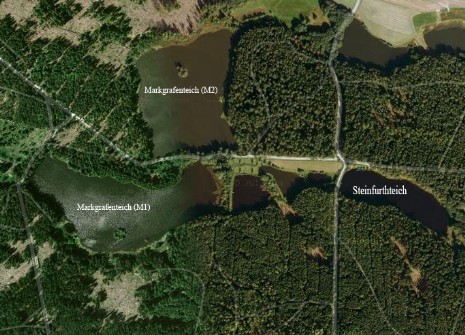 Die heute als "Markgrafenteiche" bekannten Gewässer sind Teil einer Teichplatte. Ihre Entstehung geht bis in das 15 Jahrhundert zurück, obgleich nicht für jeden einzelnen der Teiche ein Beleg auffindbar ist. Erst Ende des 18 Jahrhunderts, als die Markgrafschaft Bayreuth nicht mehr existierte, bürgerte sich der heutige Name für zwei von ihnen ein; in Erinnerung daran, dass sie einst zu den Kammergütem der Bayreuther Fürsten gehört hatten. Dramatische Ereignisse brachten in den Jahren 1412 bis 1414 die Gebiete um Selb an die Markgrafschaft Brandenburg - Kulmbach - Bayreuth. Bis dahin waren sie von einem Adelsgeschlecht, den "Förstern von Selb", als Teil des Egerer Reichslandes, der "Regio Egere", verwaltet worden Markgraf Friedrich gliederte das neu erworbene Gebiet seinem Land, der Markgrafschaft Kulmbach, an. Er verlieh 1426 Selb das Stadtrecht und übernahm auch die alten Rittersitze der Forster und die Lehenseinkünfte der hier befindlichen Bauernhöfe und bürgerlichen Anwesen. Während letztere ihre Abgaben an das Kastenamt der Markgrafen leisteten, wurden etliche Güter als sogenannte "Kammergüter' ausgewiesen, über deren Erträge der Landesfürst unmittelbar verfügen durfte. Sie wurden der fürstlichen Domänenkammer, zugeführt und dienten vor allem dem Unterhalt der markgräflichen Bauten und der Hofhaltung. In Selb waren es 15 kleine Bauernhöfe, diverse Felder und die oben genannten Teiche. (Die Teiche waren also entweder schon von den Förstern vor 1412 angelegt worden, stammten aus kirchlichen. Vermögen oder wurden kurz nach dem Übergang an die Markgrafen im 15 Jahrhundert gebaut). Im Jahr 1498 wurde ein erstes "Landbuch der Sechsämter" angelegt. Aus der darin enthaltenen Grenzbeschreibung ist ersichtlich, dass die Waldabteilung mit diesen Teichen zwischen den damaligen Forstabteilungen Rospach, Buchwald, Laden- und Wolfsbrunnen "Distelwald" genannt wurde . Heute noch heißt die Flur unterhalb des Schutzteiches "Distelacker". Im Landbuch sind bereits der "Erlteich", der "Schutzteich" und der "Breite Teich" benannt (folglich wird es wohl auch schon den "Langen Teich" gegeben haben) Auch die "Steinfurt" kommt vor. Diese Furt war der Übergang der alten Straße von Selb nach Eger, die hier einen Bach durchquerte und auf dem Damm zwischen den beiden Markgrafenteichen verlief. Auch die Teiche "im Roßpach" (in der Flur zwischen Stopfersfurt und dem "Langen Teich") gab es bereits. Zu einem "Weiher an der Steinfurt" wird sogar die Größe von 20 Tagwerk (ca. 6,8 ha) angegeben, die zu einem Markgrafenteich passen könnte. Beiläufig erfährt man, dass damals durch "Weiherschütter" noch weitere große Teiche angelegt wurden. Konkrete Belege dafür lassen sich aber nur dem "Weiher in der Lausen" (dem heutigen "Wunsiedler Weiher") zuordnen.